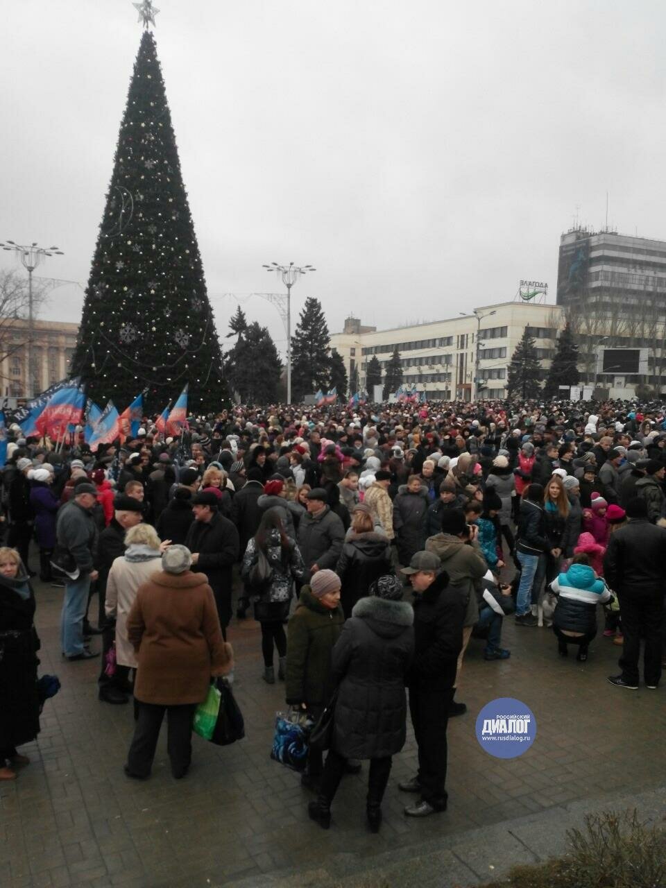 В субботу, 20 декабря, на центральной площади Донецка проходит "День солидарности", который организовали власти самопровозглашенной ДНР.