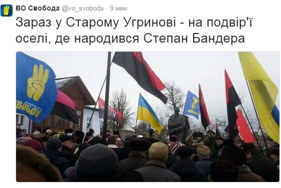 Кроме того, уже стали попадать в социальные сети и фотографии событий с родины Степана Бандеры, села Угринов, где также проводят массовые мероприятия по случаю его 106-й годовщины с дня рождения.