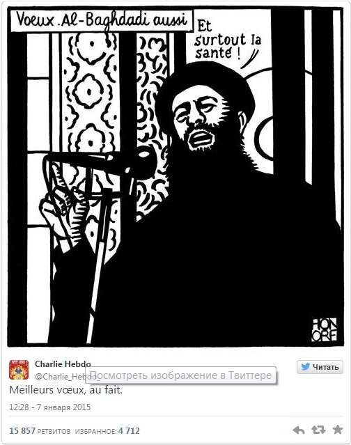 По неофициальной информации, нападение на редакцию еженедельника произошло спустя несколько часов после появления в Твиттере издания карикатуры на одного из лидеров группировки «Исламское государство» Абу Бакра аль-Багдади.