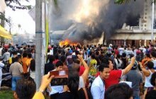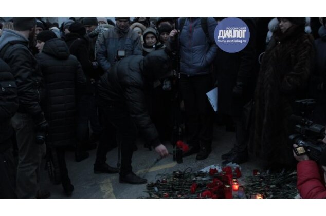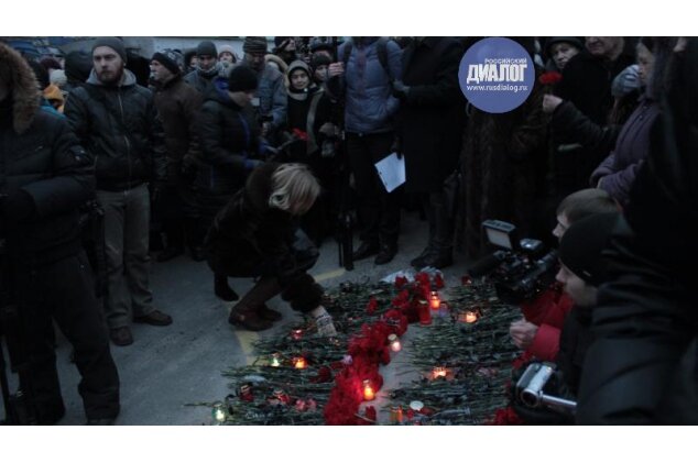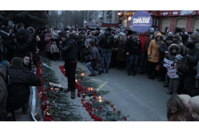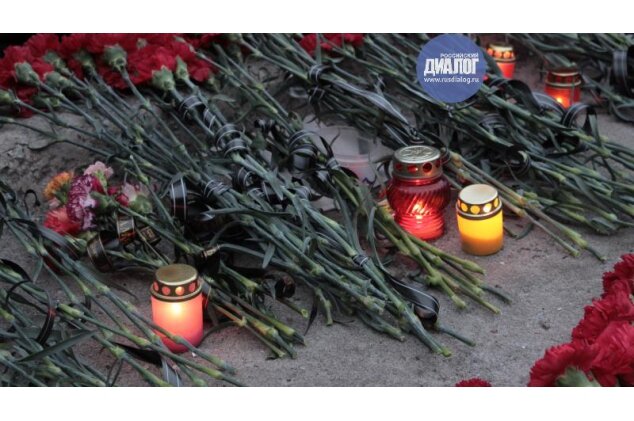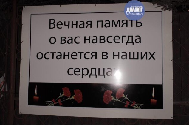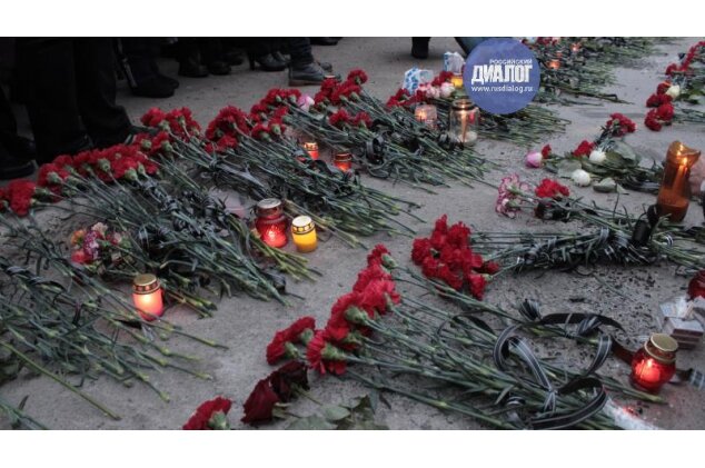 На траурный митинг люди несли цветы и свечи в память о погибших.