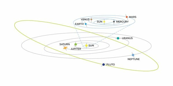 Из-за эксцентричности орбиты Плутон то приближается к Солнцу на расстояние 29,6 а. е. (4,4 млрд км), оказываясь к нему ближе Нептуна, то удаляется на 49,3 а. е. (7,4 млрд км)