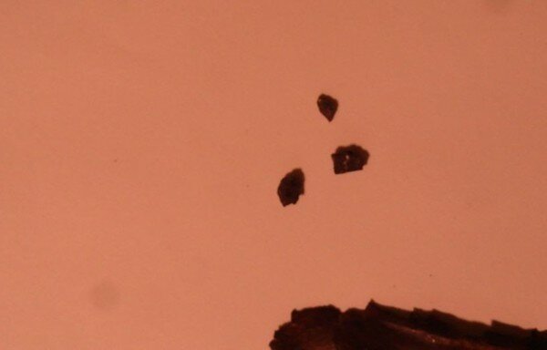 Микроосколки проверяются на радиоактивность, поэтому прикасаться к образцам, которые демонстрировались на брифинге, журналистам было запрещено.