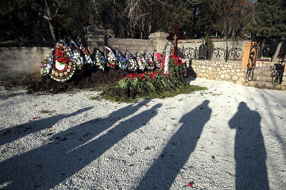 Вокруг могилы друзья и родные возложили ровно тринадцать венков. Сама прощальная процедура проходила в Севастополе под усиленной охраной. Джипы и автомобили с представительскими номерами подъезжали к кладбищу в большом количестве, но зайти на него разрешалось только тем, кто был в списках у охраны.