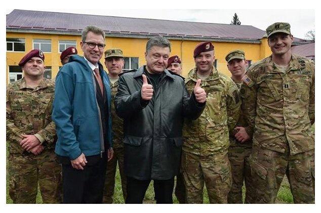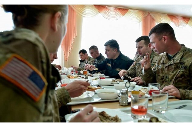 Порошенко разделил фронтовой обед с прибывшими на учения в Украину солдатами США