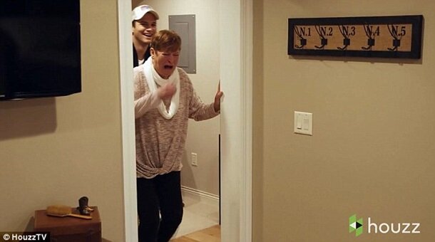 Создать такой подарок и воплотить задумку в жизнь актеру помогли отчим Марк и дизайнер Кэтрин. Все работы проводились в тайне от его матери Дайаны - на момент ремонта ее отправили в небольшое путешествие. По признанию Кутчера, результат их стараний превзошел все ожидания. Они не только установили новую мебель, но и нашли место для старых вещей, которые гармонично вписались в обстановку.