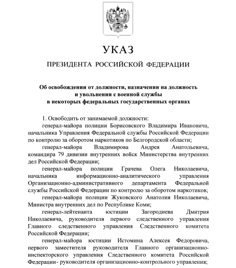 Сегодня, 8 мая, президент России Владимир Путин уволил около 20 генералов.
