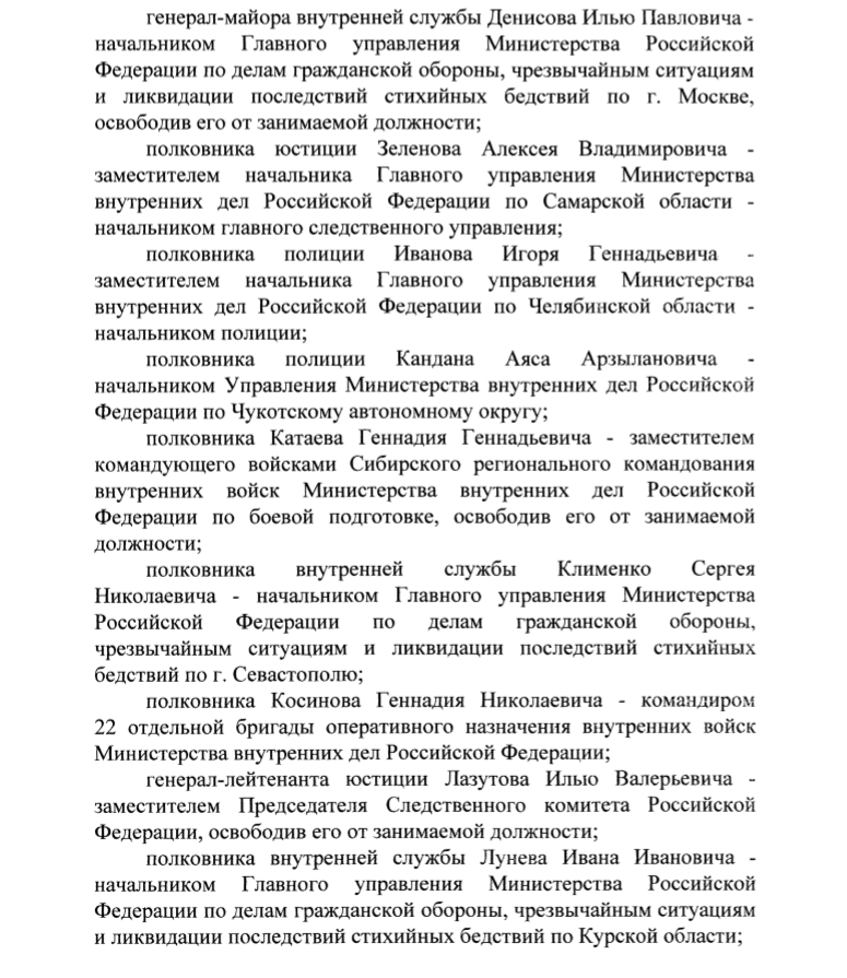 Путин уволил почти 20 генералов. Полный список