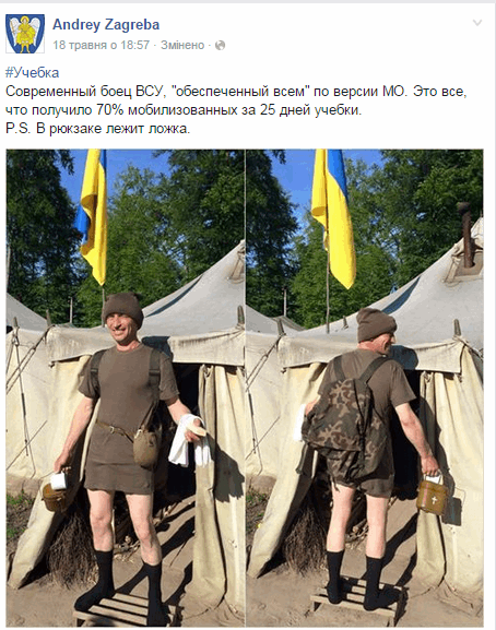 Отметим, Министерство обороны Украины постоянно заявляет, что ВСУ обеспечены всем необходимым. В то же время бойцы заявляют, что если бы не волонтеры, они в буквальном смысле ходили бы без штанов.