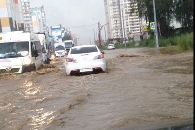 В пятницу, 26 июня, затопленным оказался Челябинск. На дорогах города образовались огромные пробки, потому что уровень воды превысил все разумные границы. Люди по пояс в воде пытаются спасти свои машины, но, в большинстве случаев, безуспешно.