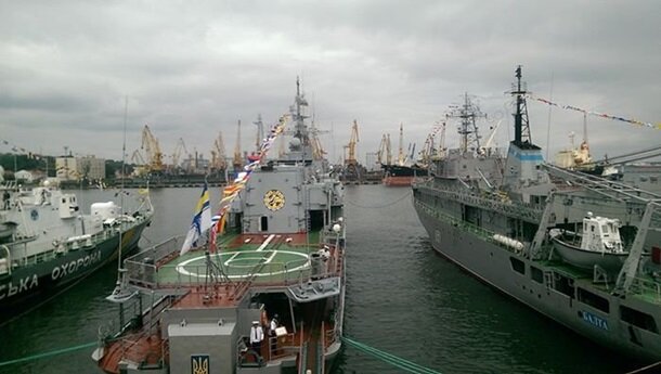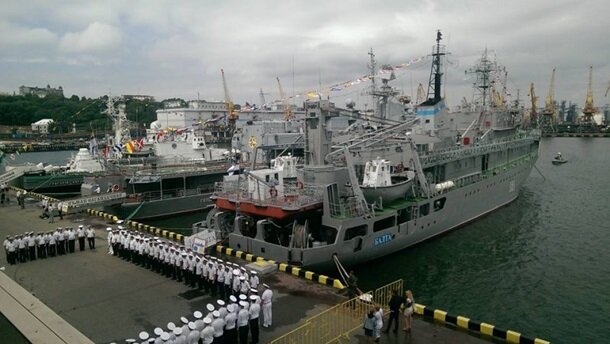 Отметим, что днем в Одессе торжества начались на морвокзале на фрегате Гетьман Сагайдачний с участием министра обороны Степана Полторака, командующего ВМС Гайдука, а также губернатора Саакашвили и мэра Одессы Труханова.