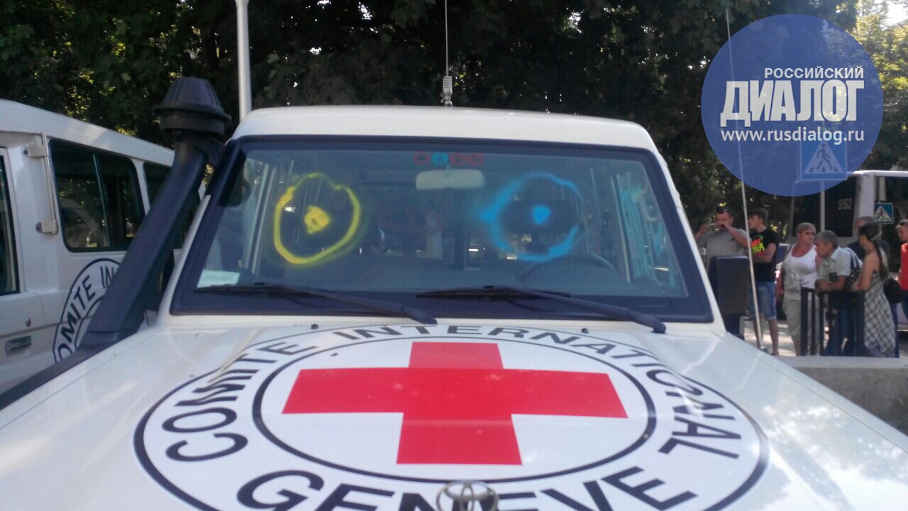 В данный момент пять человек, представители общественности, вошли в отель для переговоров с представителями миссии ОБСЕ и Красного Креста.