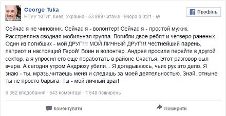 "Этому человеку я не просто сказал, я ему написал, что со вчерашнего утра он из обычного предателя и барыги превратился в убийцу. Этот человек перешел грань, все! Ни о каких встречах, разговорах и переговорах отныне речь не идет. Я буду его уничтожать!" – сказал Тука.