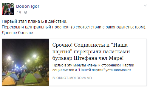 По его словам, представители партии социалистов Молдавии и "Нашей партии" установили более сотни палаток перед зданиями аппарата президента и парламента Молдавии.