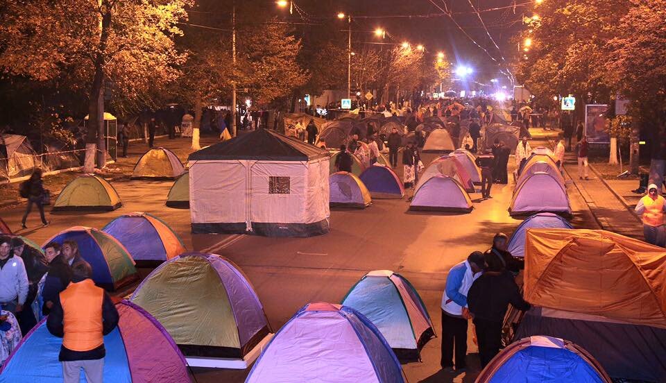 Сторонники левоцентристской оппозиции разбили палаточный городок на центральной улице Кишинева.