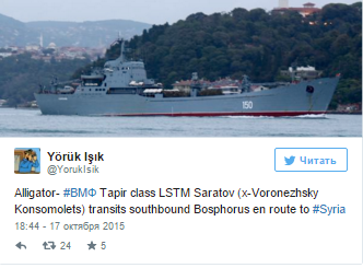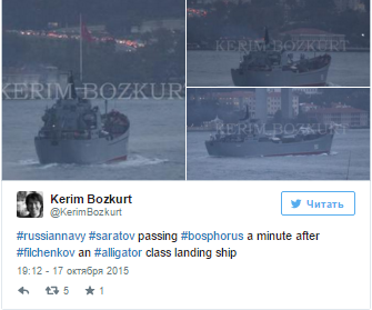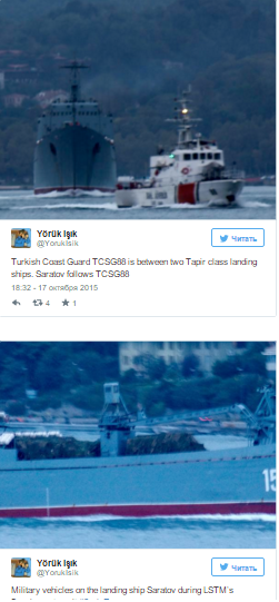 СМИ Турции передают о том, что в Средиземное море через пролив Босфор проходят два больших десантных корабля России. По предварительным данным, это "Николай Фильченков" и "Саратов".