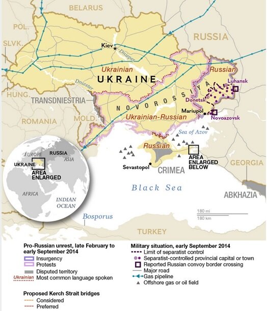 В статье сообщается, что хотя на Донбассе объявлено прекращение огня, сепаратисты не отказываются от своих условий по отделению от Украины. Также авторам сделано экскурс в историю Крыма и Южной Украины, начиная со времен Османской империи.