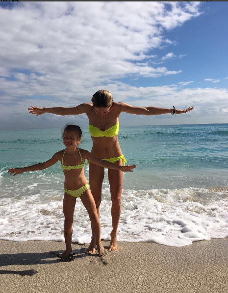А на втором снимке Вера неожиданно показала свою младшую дочь Сару, которой исполнилось 6 лет. На фото мама и дочь позируют в похожих купальниках одинакового цвета.