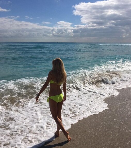 На днях певица показала новые снимки, которые были сделаны на берегу океана. На первом фото Брежнева позирует в желтом бикини, демонстрируя стройную фигуру.