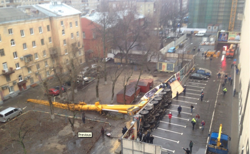 Как сообщил директор компании "Крансити" Владимир Кназев, трагедия произошла в результате разрушения опорно-поворотного круга подъемного сооружения.