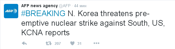 Такую информацию в своем аккаунте в Твиттер разместило агентство France-Presse, ссылаясь на северокорейские СМИ.
