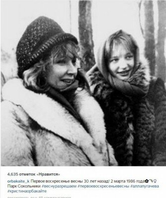 На фотографии юная Орбакайте со своей матерью. Снимок подписан "Первое воскресенье весны 30 лет назад. 2 марта 1986 года. Парк Сокольники". Фанаты были в восторге от редкого, ранее не выложенного снимка, и выражали благодарность Орбакайте за фотографию, которую, по их мнению, можно назвать исторической. Кристина, вероятно, ностальгирует по своему детству, выкладывая старые атмосферные снимки с семьей.