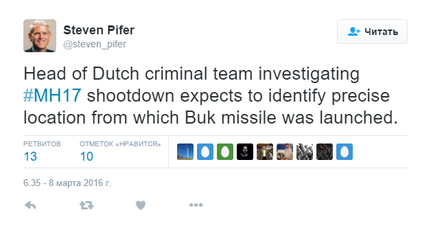"Глава группы из Голландии, проводящей расследование случившегося, планирует найти конкретное место, откуда запустили ракету "Бук", - отметил он.