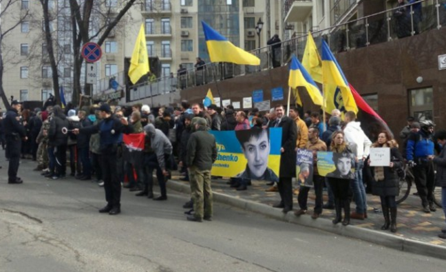 В ходе акции радикалы потребовали от главы украинского государства Петра Порошенко разорвать все дипломатические отношения с Российской Федерацией.