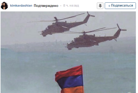 Как ранее сообщал "Российский Диалог", Ким Кардашьян в социальных сетях выразила поддержку вооруженным силам Армении, добавив, что молится за армянский народ.