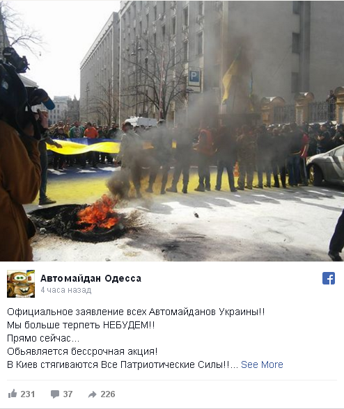 В Киев стягиваются Все Патриотические Силы!!" - говорится на странице "Автомайдан Одесса" в Твиттере.