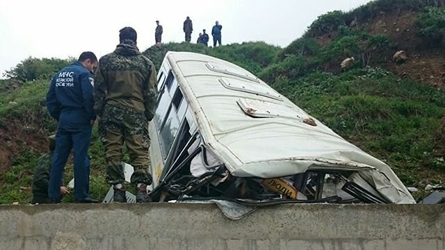 Автобус с военными в Цхинвале упал на бетонную опору после того, как свалился с обрыва, - у впереди сидящих не было шансов выжить