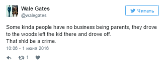 "Некоторые люди абсолютно не понимают, как это - быть родителями. Они отправляются в лес и оставляют там собственного ребенка", - написал пользователь Twitter.