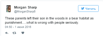 "Эти родители оставили ребенка в лесу с медведями, чтобы наказать его... что не так с этими людьми", - задает риторический вопрос другой пользователь.