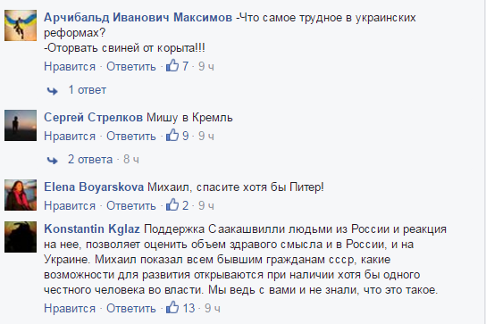 "Пусть Михаил Саакашвили станет первым в Одессе (одесситы вам верят, очень надо оправдать наши надежды)", - пишет другой пользователь.