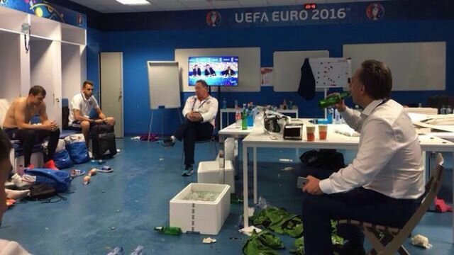 Мутко появился в раздевалке сборной именно в тот момент, когда футболисты пили пиво, и повод ввиду ничьей с Англией предоставился отличный, и кислотно-щелочной баланс восстановить было необходимо. Мутко не стал отставать и также откупорил для себя бутылку с пенными напитком. Как и сами футболисты, глава Минспорта принялся пить "из горла".