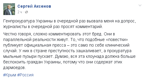 Сергей Аксенов на своей странице в Facebook прокомментировал решение ГПУ.