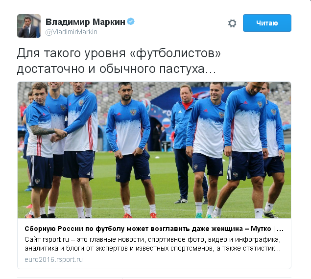 "Для такого уровня "футболистов" достаточно и обычного пастуха", - отметил Маркин.