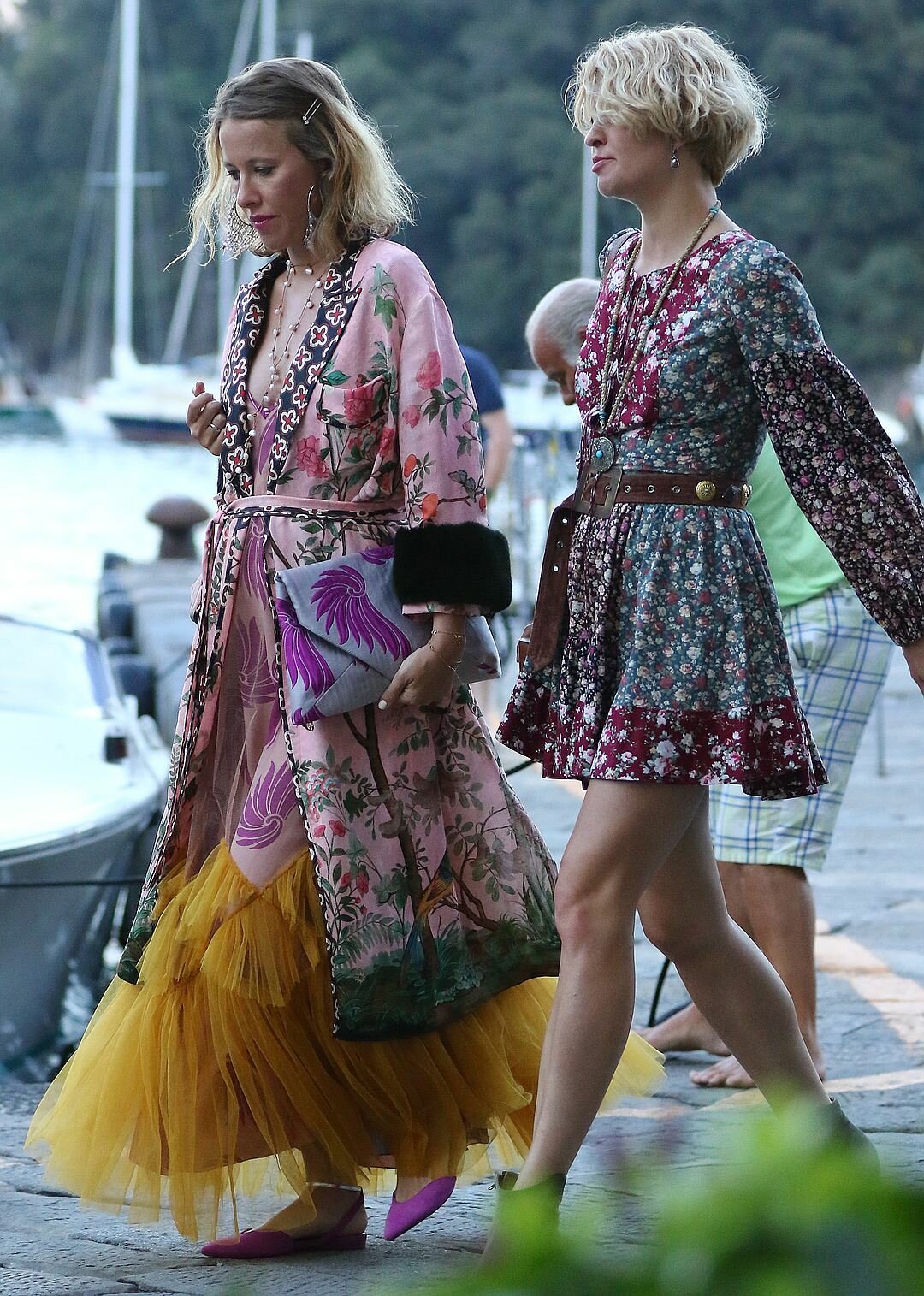 Отдыхая с подругами в Италии, Ксения надевает просторные наряды, подчеркивающие ее "интересное" положение.