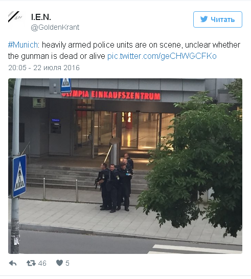 ЧП в Мюнхене: неизвестный, расстрелявший людей, может находиться в здании торгового центра