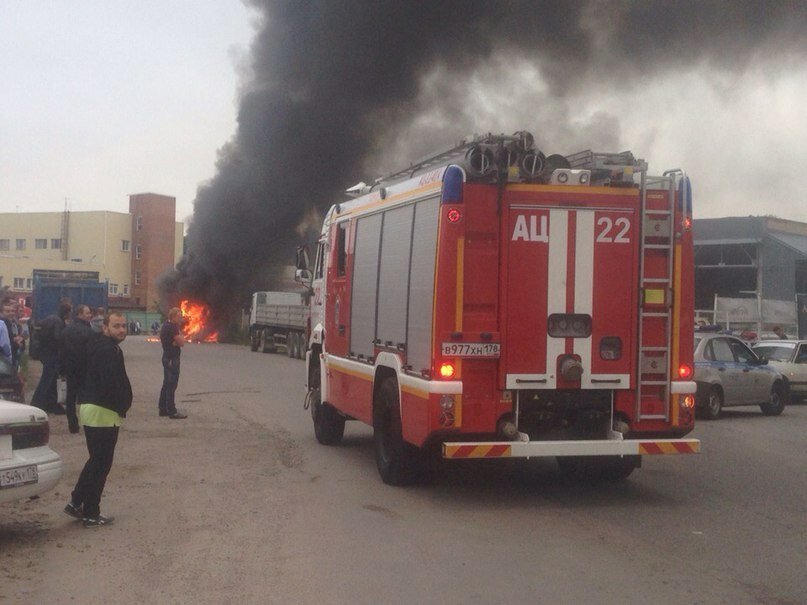 В Питере у "Метрики" взрыв автобуса. Очевидцы – сгорел водитель, полиция отрицает. Кадры с места события