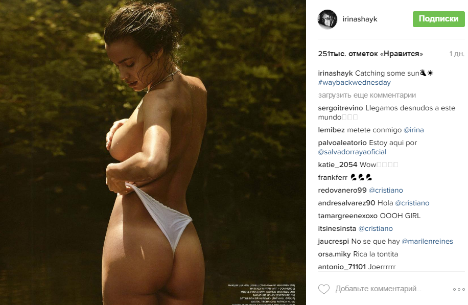 Подписчики звезды были восхищены откровенным фото и не скупились на комплименты. "Просто шикарная девушка", "Ты богиня, Ирина", "Роналду, зря упустил ее", "Теперь плачь, Криш", - писали поклонники модели, обращаясь к экс-возлюбленному Ирины футболисту Криштиану Роналду.