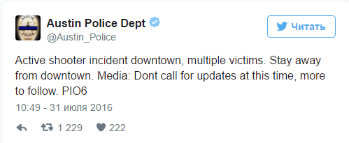 Согласно информации, обнародованной местной полицией в соцсети Twitter, инцидент произошел в городе Остин.