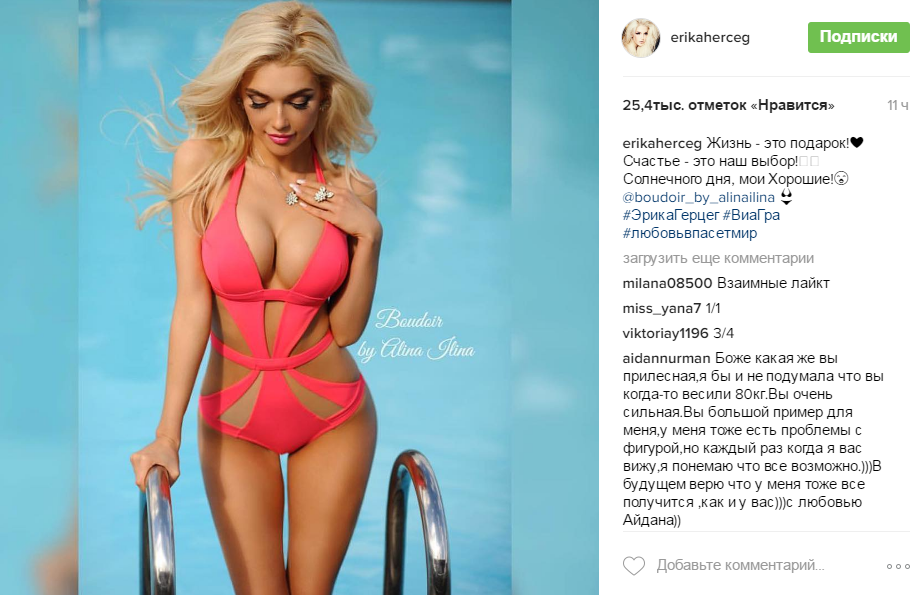 Поклонники Герцег были восхищены новыми снимками девушки в Instagram. Они делали множество комплиментов ей и ее прекрасной фигуре, и даже признавались в любви. "Богиня! Целую ваши ножки", "Эрика, вы – подарок", "Эрика красавица", "Моя дива", "Просто неземная красотка, богиня", - множество подобных лестных комментариев получала известная певица.