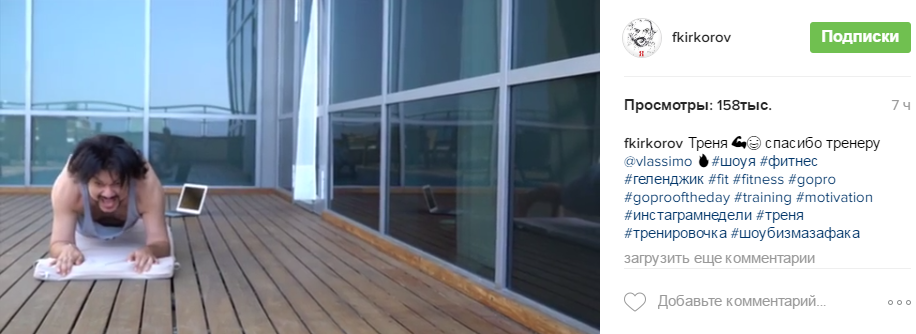 Недавно знаменитый певец решил поделиться с поклонниками видео, на которых сняты его тренировки. Оказывается, Киркоров каждый день упорно работает над своей физической подготовкой. Певец занимается фитнессом и разными упражнениями, помогающими поддерживать мышцы в тонусе. Одним из излюбленных упражнений певца является "планка". Также на видео запечатлены тренировки Киркорова на беговой дорожке.