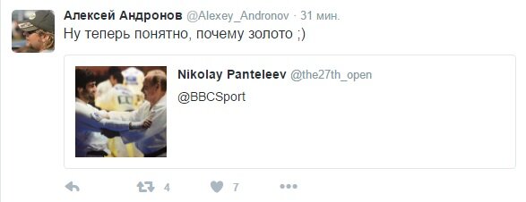 "Ну теперь понятно, почему золото", - написал в твиттере известный спортивный комментатор Алексей Андронов.