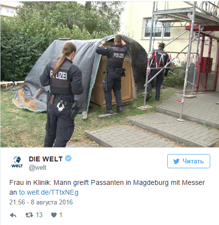 По данным немецкой полиции, нападающий скрылся в неизвестном направлении.