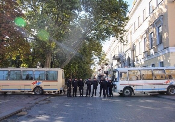 С самого утра, по сообщению местных СМИ, правоохранители выставили несколько автобусов, перекрыв проход по участку Приморского бульвара от Дюка до Думской площади. Участников акции должны были привезти к месту старта на автобусе.