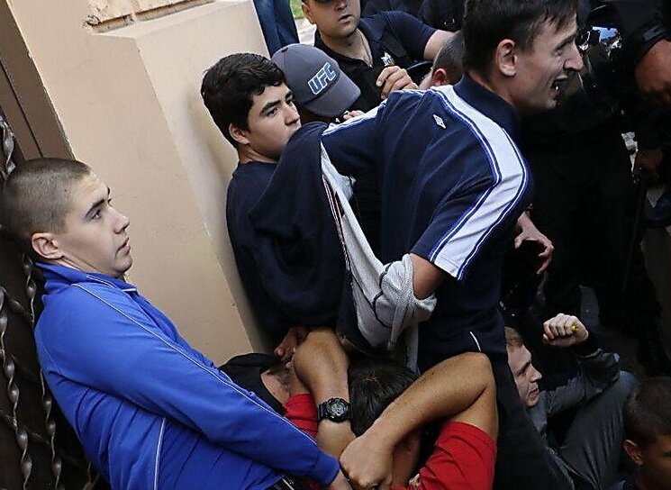 Так называемый Марш равенства стартовал возле памятника Дюку и закончился у Думской площади. По окончании шествия на участников Марша попытались напасть агрессивно настроенные молодые люди. Правоохранители взяли их в кольцо, используя дубинки. Нескольких человек сотрудники полиции повалили на землю, заковали в наручники и позже отвели в автозак.