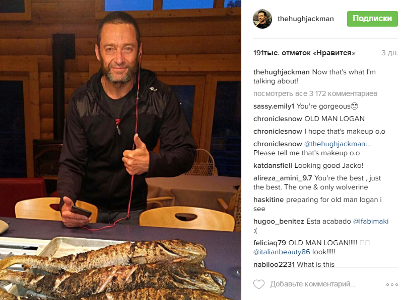 На новом фото актер сфотографировался после рыбалки. На фото красовался богатый улов актера: Хью поймал три огромные рыбины, которые продемонстрировал в своем микроблоге. Однако внимание поклонников привлек не богатый улов, а сам Хью, который заметно осунулся. Седина в бороде, дряблая пятнистая кожа лица, морщины – все это разочаровало поклонников, привыкших к идеальному образу экранного "Росомахи".