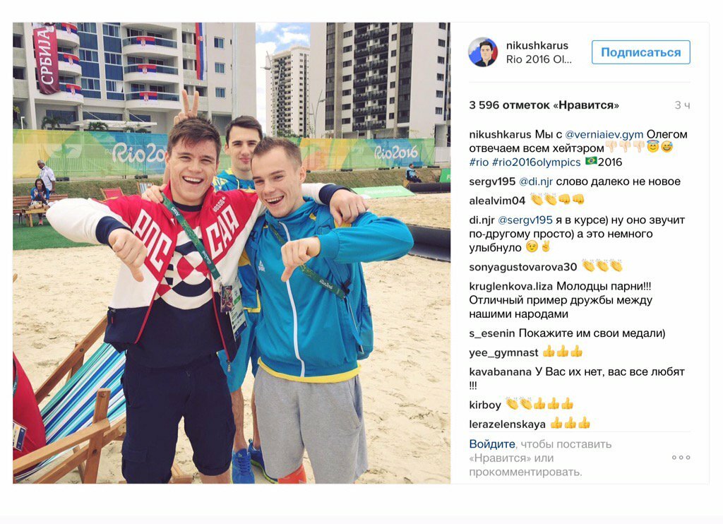 Напомним, украинские болельщики обрушились со шквалом критики в адрес Верняева после его дружеских фотографий из Рио в обнимку с российскими гимнастами.