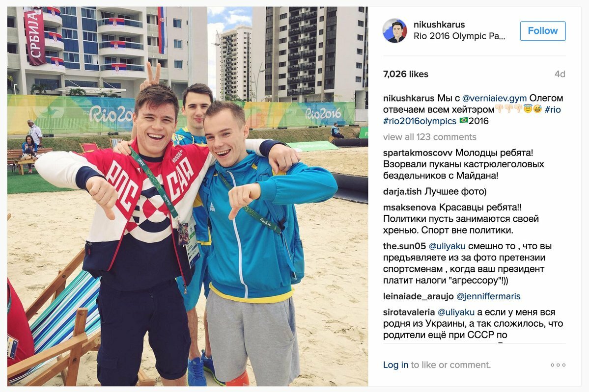 Гимнаст из Донецка, представляющий Украину, уже не раз походу соревнований в Рио демонстративно показывал, что ему ценна дружба между российским и украинским народами, передавая привет хейтерам среди украинских болельщиков, которые критиковали его за совместные фото с российскими спортсменами.